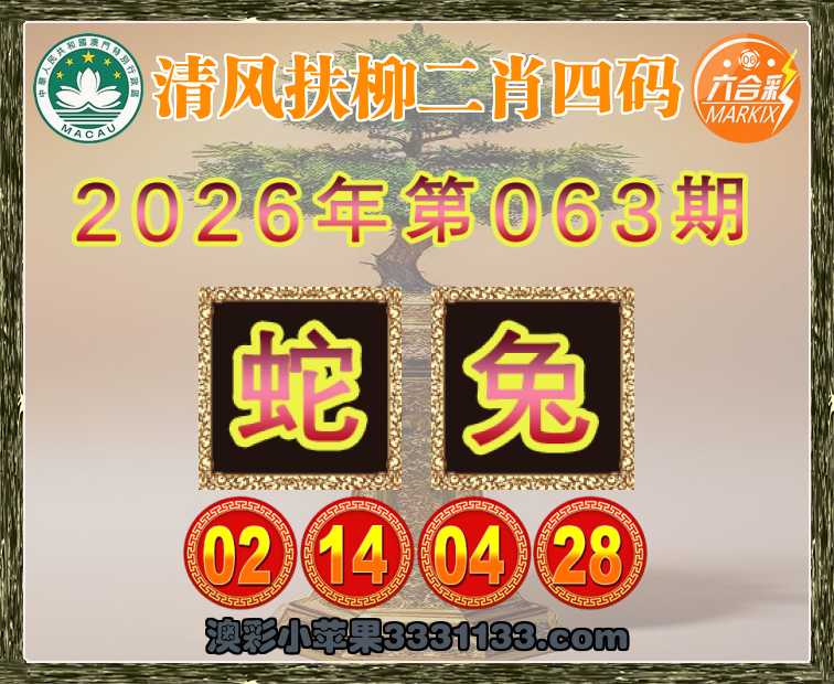 063期:【清风扶柳】 二肖四码【蛇】【02.14.04.28】开:兔28准上榜高手